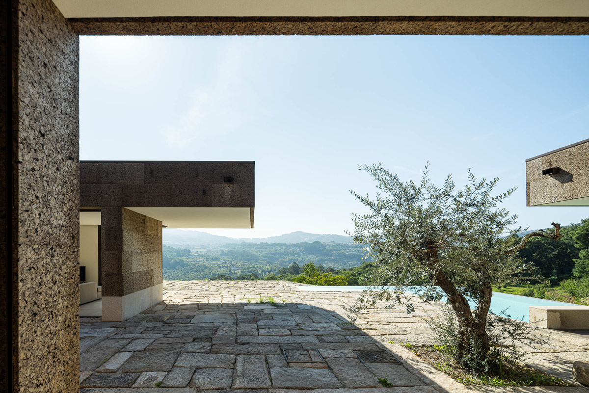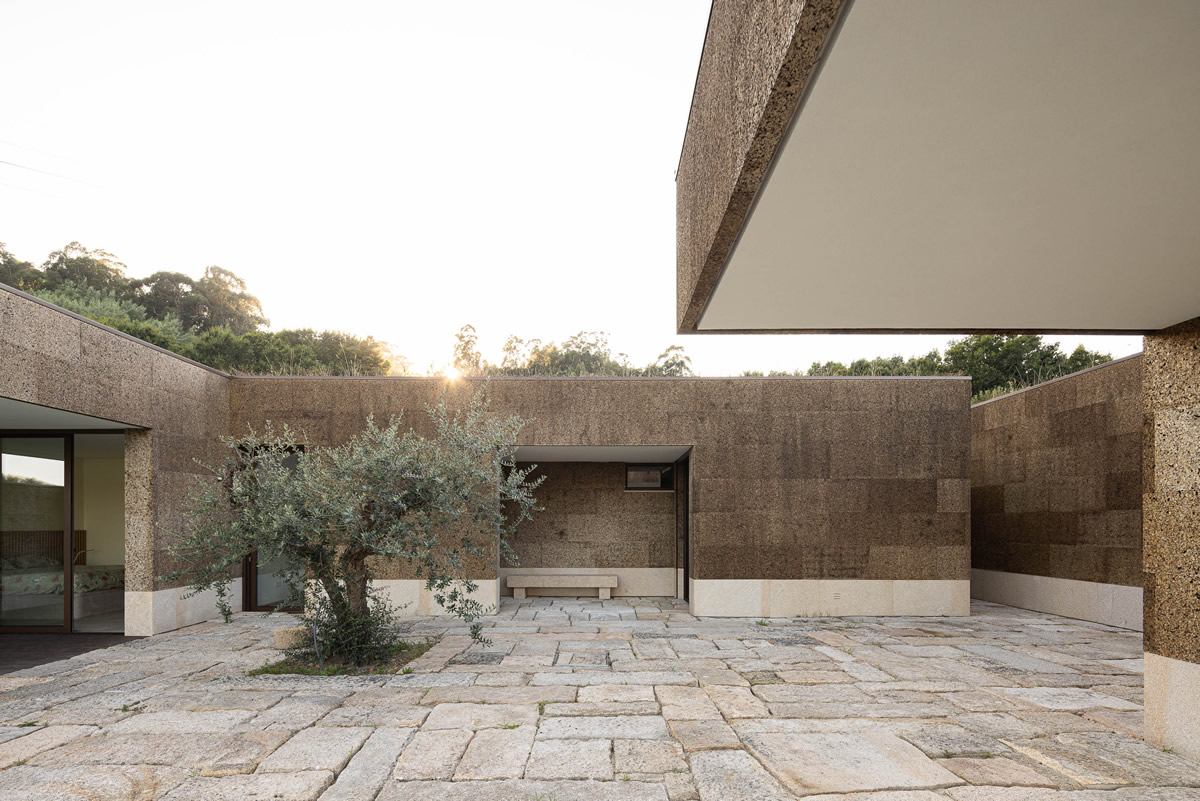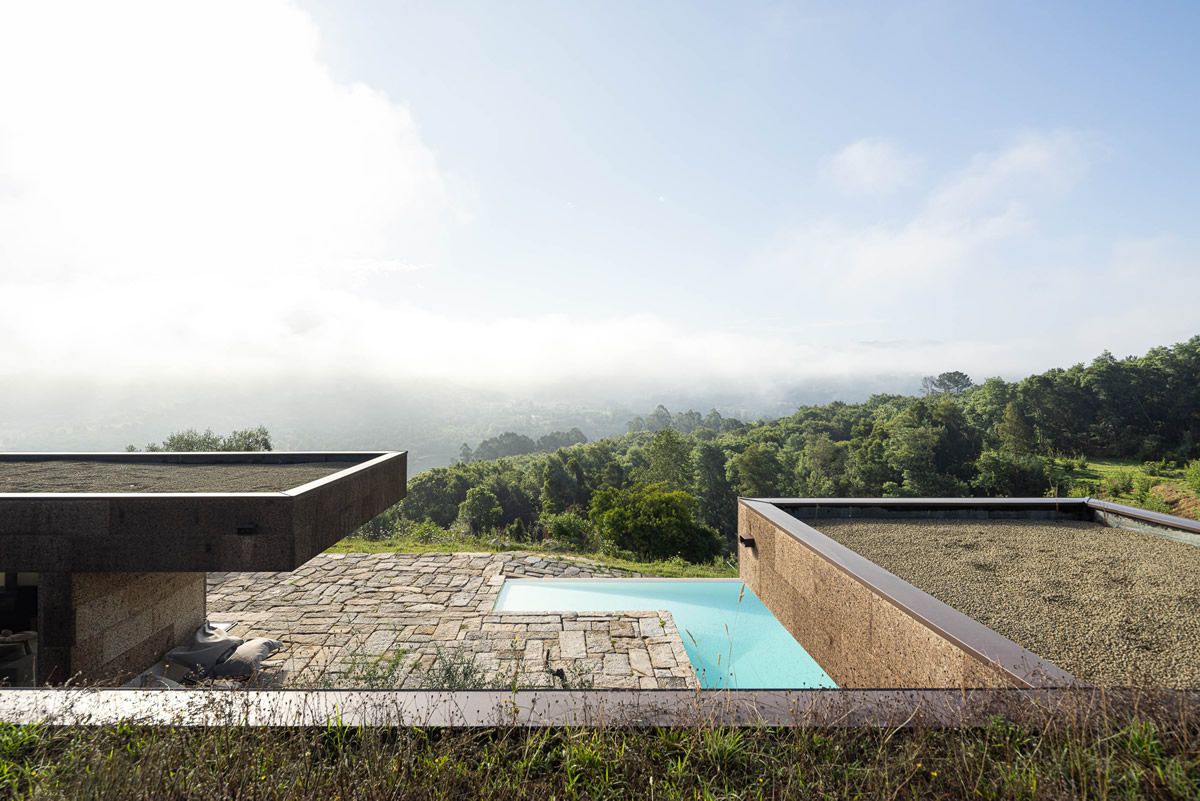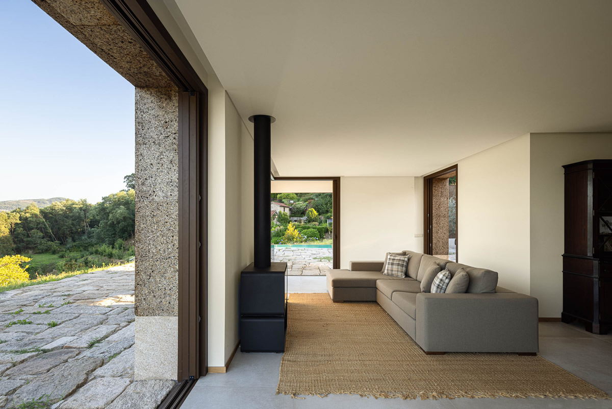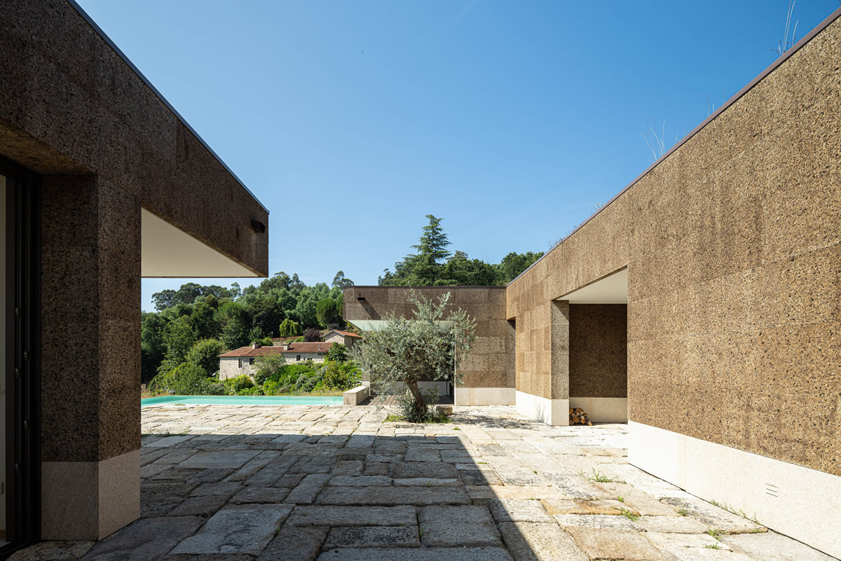 Os espaços da casa estruturam-se em torno do pátio central. Zona de quartos a poente, com exposição a nascente; Espaços sociais a nascente, com vistas panorâmicas.