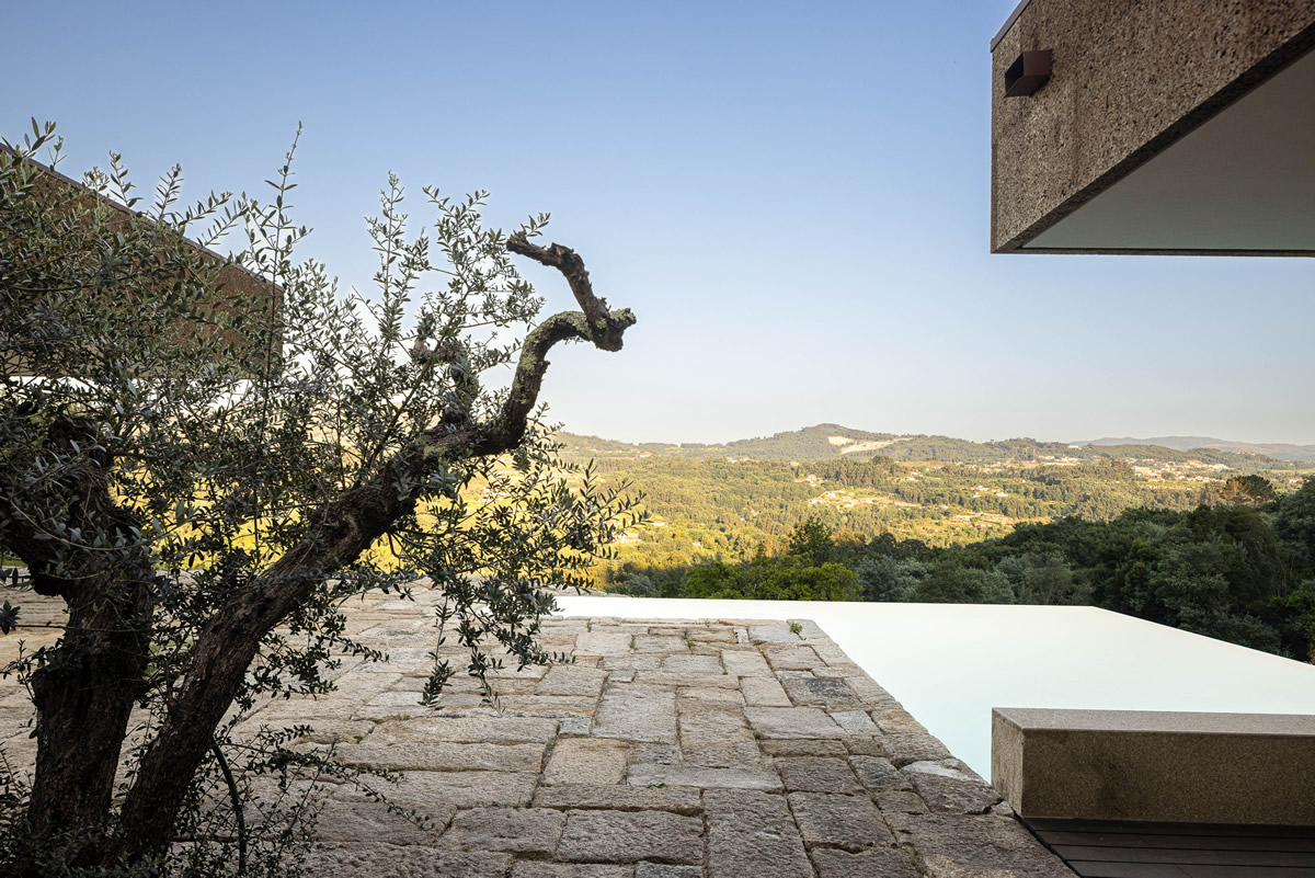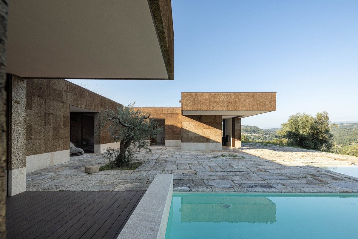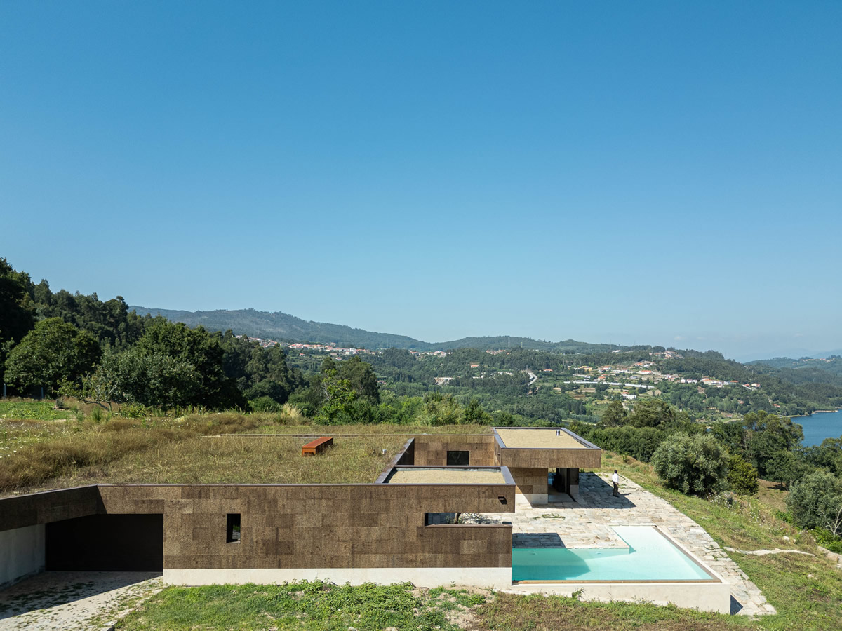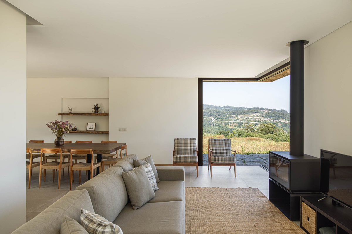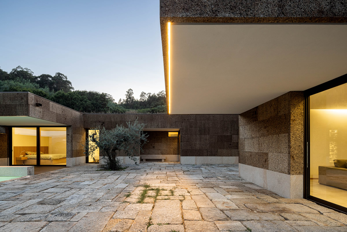 Os espaços da casa estruturam-se em torno do pátio central. Zona de quartos a poente, com exposição a nascente; Espaços sociais a nascente, com vistas panorâmicas.