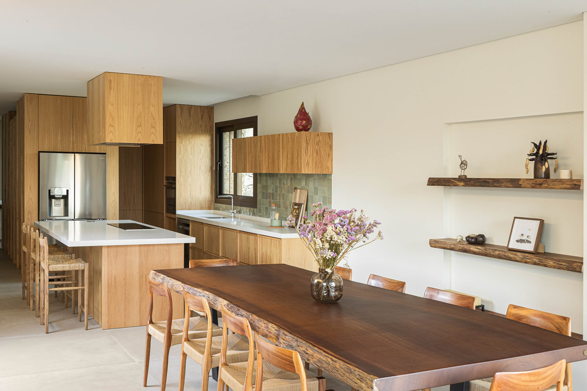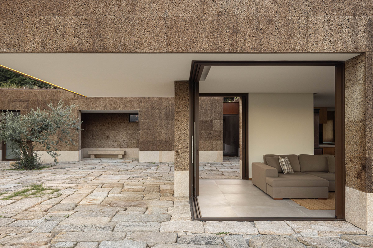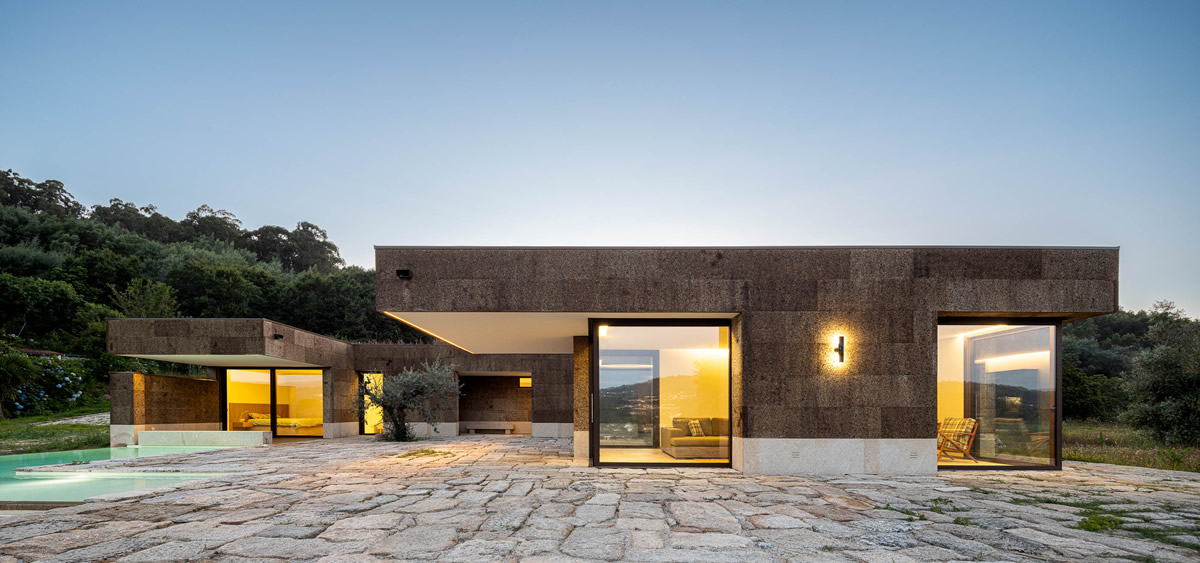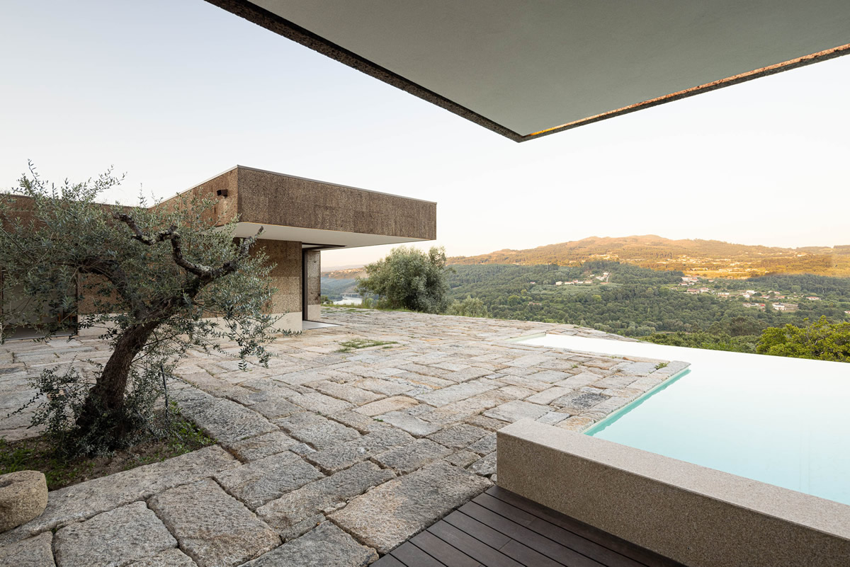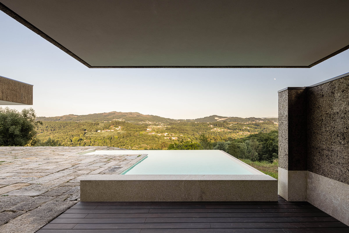 Os espaços da casa estruturam-se em torno do pátio central. Zona de quartos a poente, com exposição a nascente; Espaços sociais a nascente, com vistas panorâmicas.